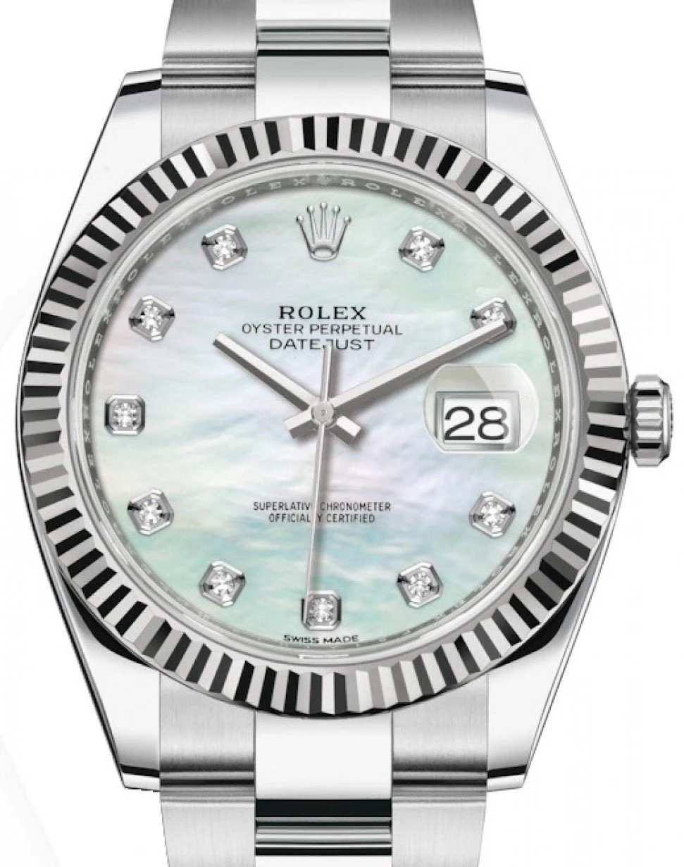 Datejust 41mm - Ref 126334-0019 - White Mother of Pearl Diamond Dial, Stainless Steel Oyster Bracelet Men's Watch