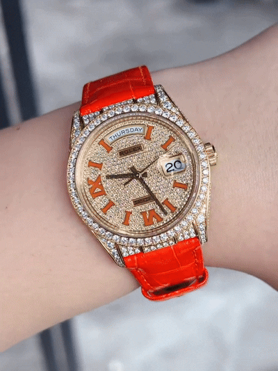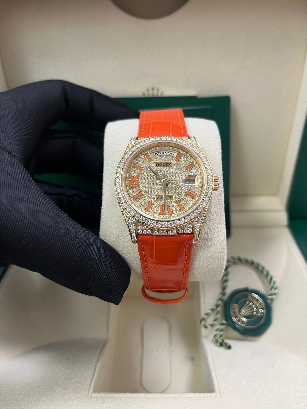 Day-Date 36 Orange Alligator Strap Pave Dial 128158rbr