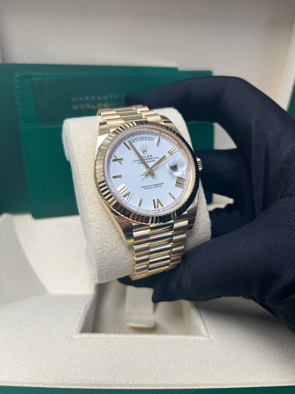 Day Date 40mm - Ref 228238-0042 - White Roman Dial & Fluted Bezel, 18K Yellow Gold President Bracelet Men's Watch