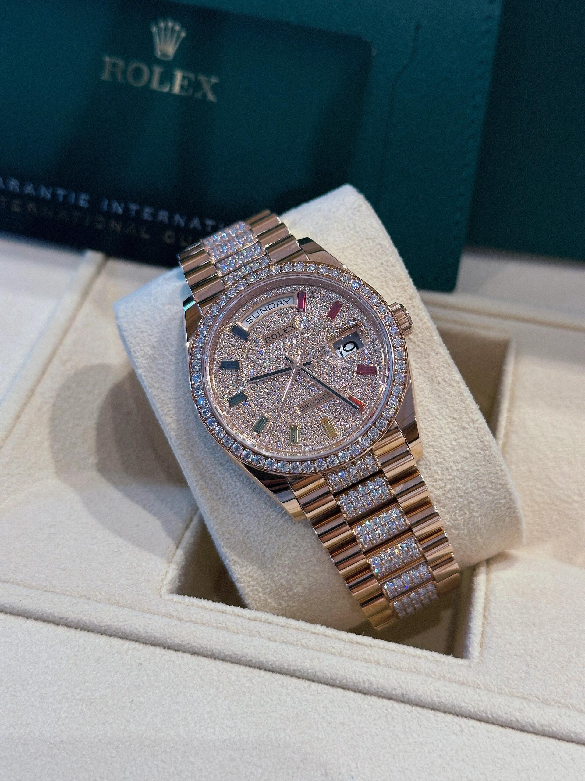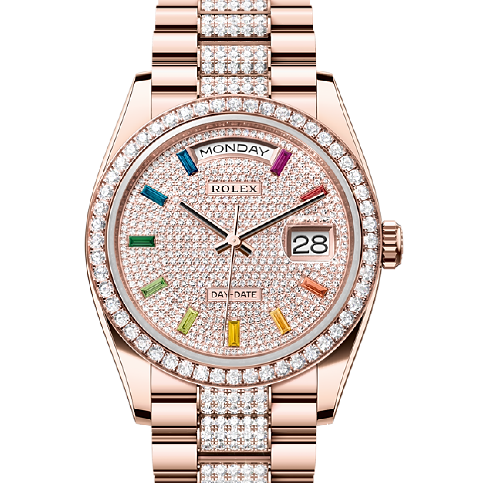 Day Date 36mm - Ref 128345rbr-0043 - Pave Rainbow Diamond Dial & Diamond Bezel, 18K Rose Gold & Diamonds President Bracelet Watch