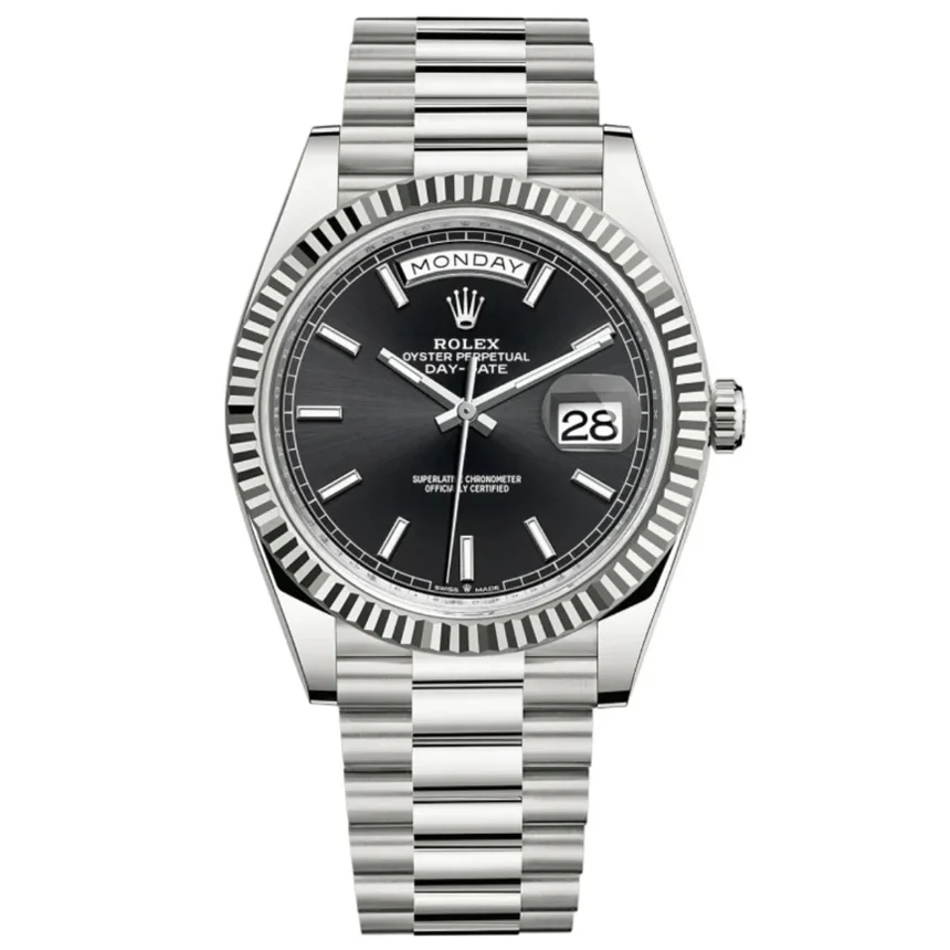 Day Date 36/40mm - Ref 228239-0004 - Black Stick Dial & Fluted Bezel, 18K White Gold President Bracelet Men's Watch