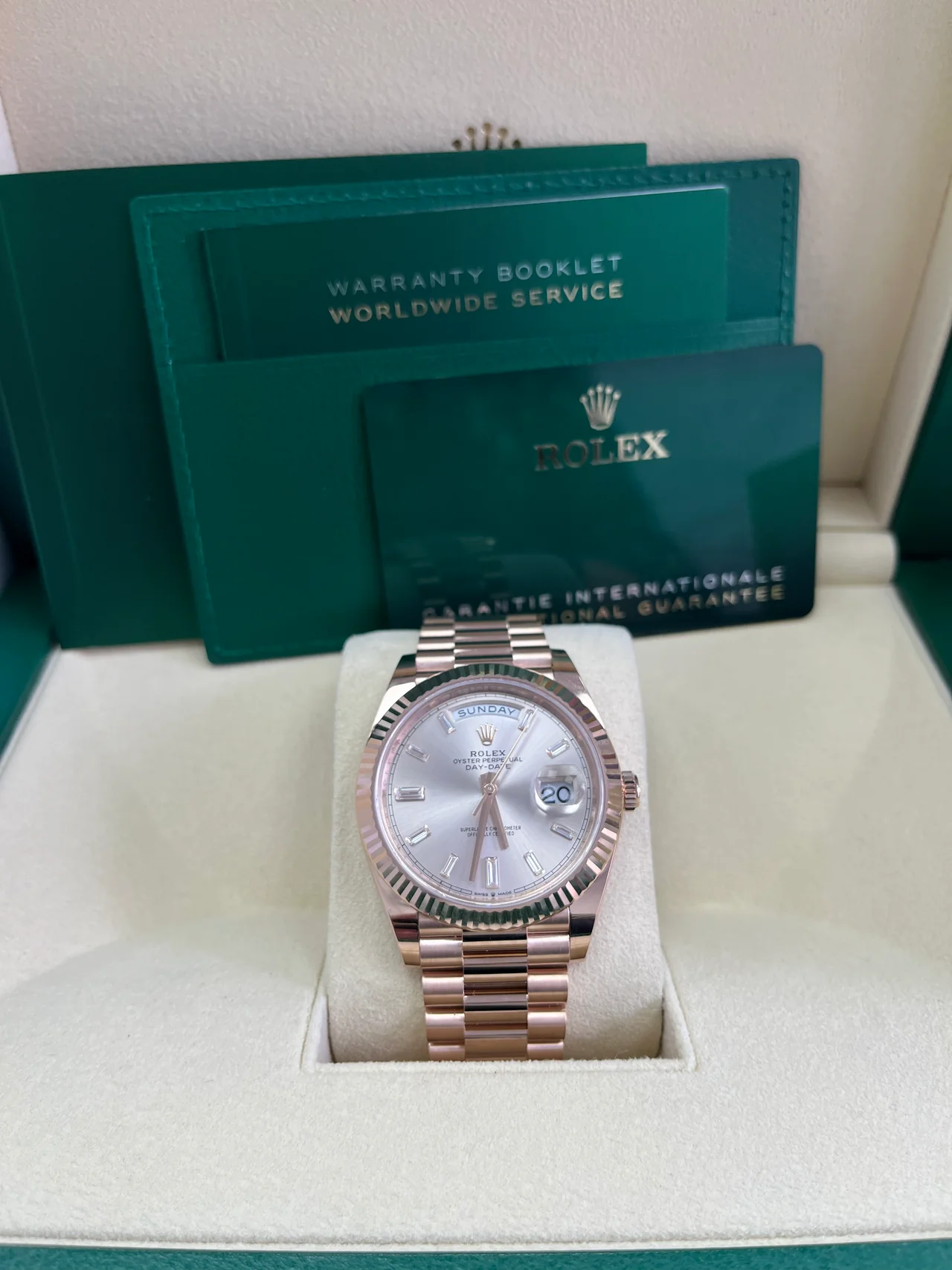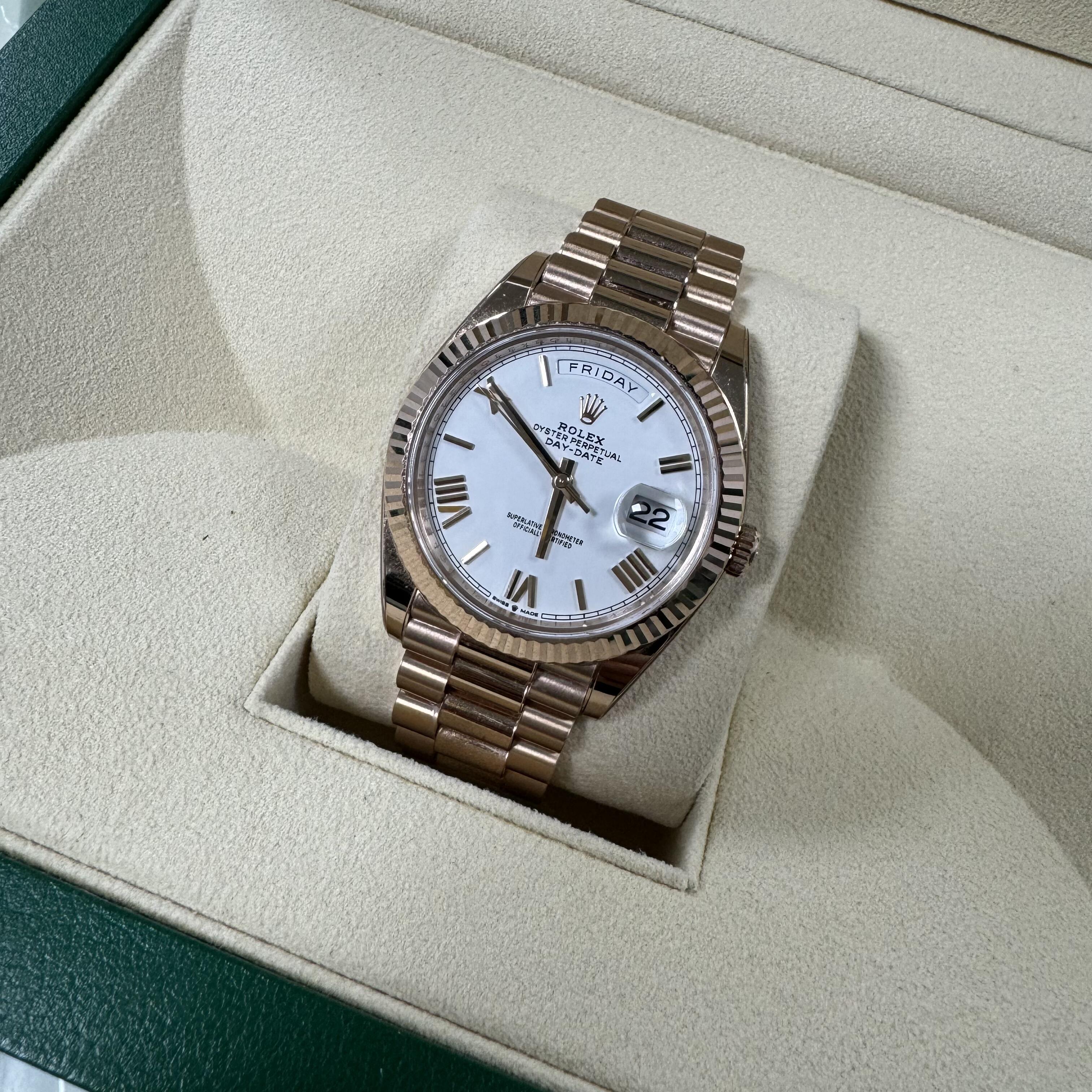 Day Date 40mm - Ref 228235-0001 - Sundust Roman Dial & Fluted Bezel, 18K Rose Gold President Bracelet Men's Watch