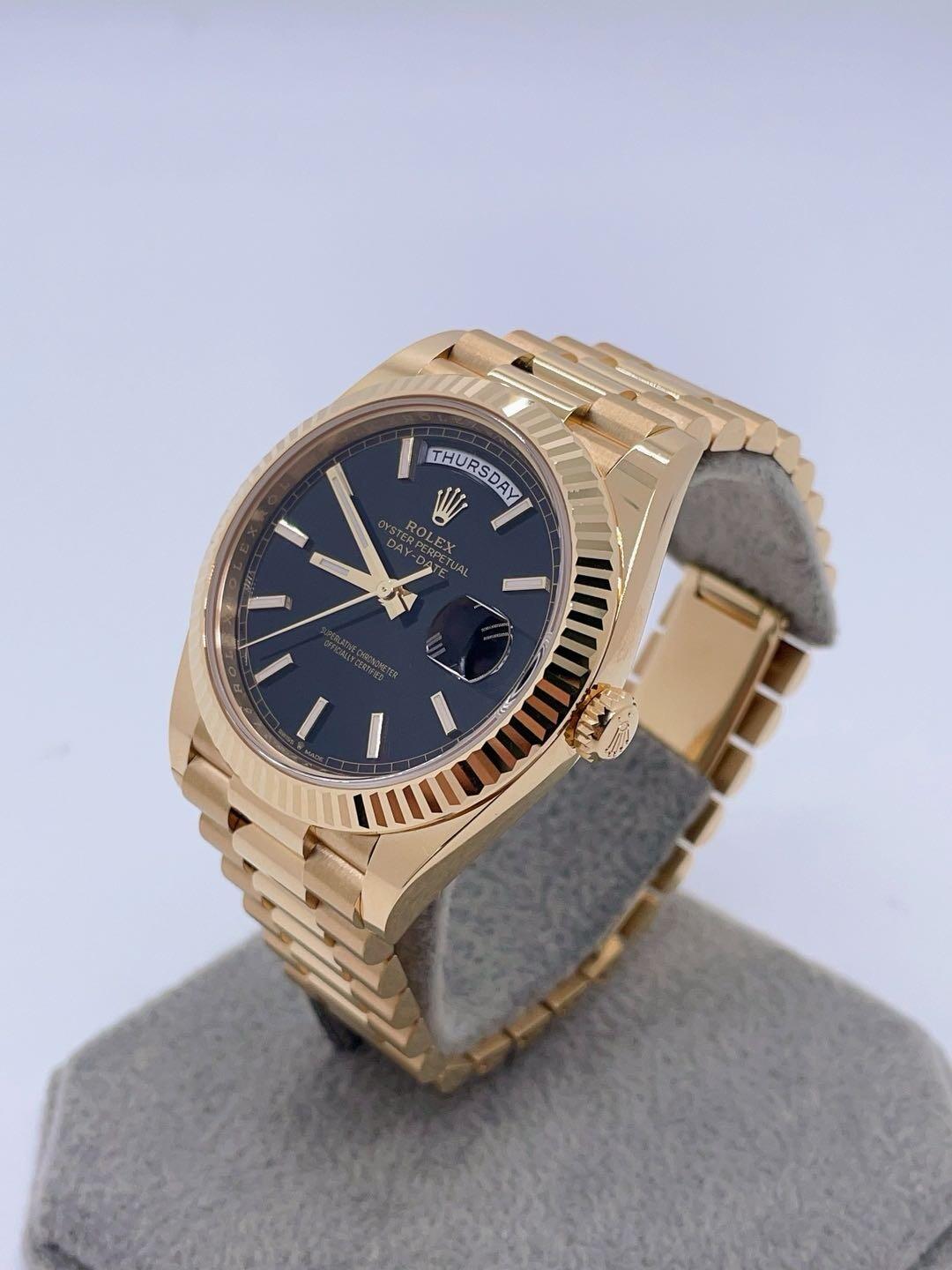 Day Date 40mm - Ref 228238 - Black Stick Dial & Fluted Bezel, 18K Yellow Gold President Bracelet Men's Watch