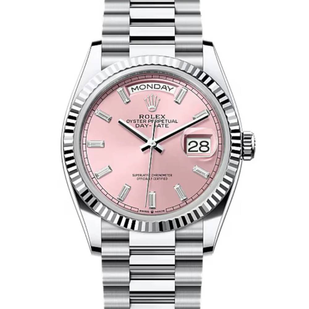 Day-Date 36 mm | Platinum President bracelet | Pink Diamond dial Fluted bezel | Men's Watch 128236
