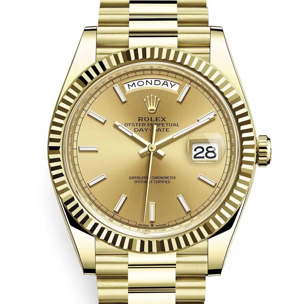 Day Date 40mm - Ref 228238-0003 - Champagne Stick Dial & Fluted Bezel, 18K Yellow Gold President Bracelet Men's Watch