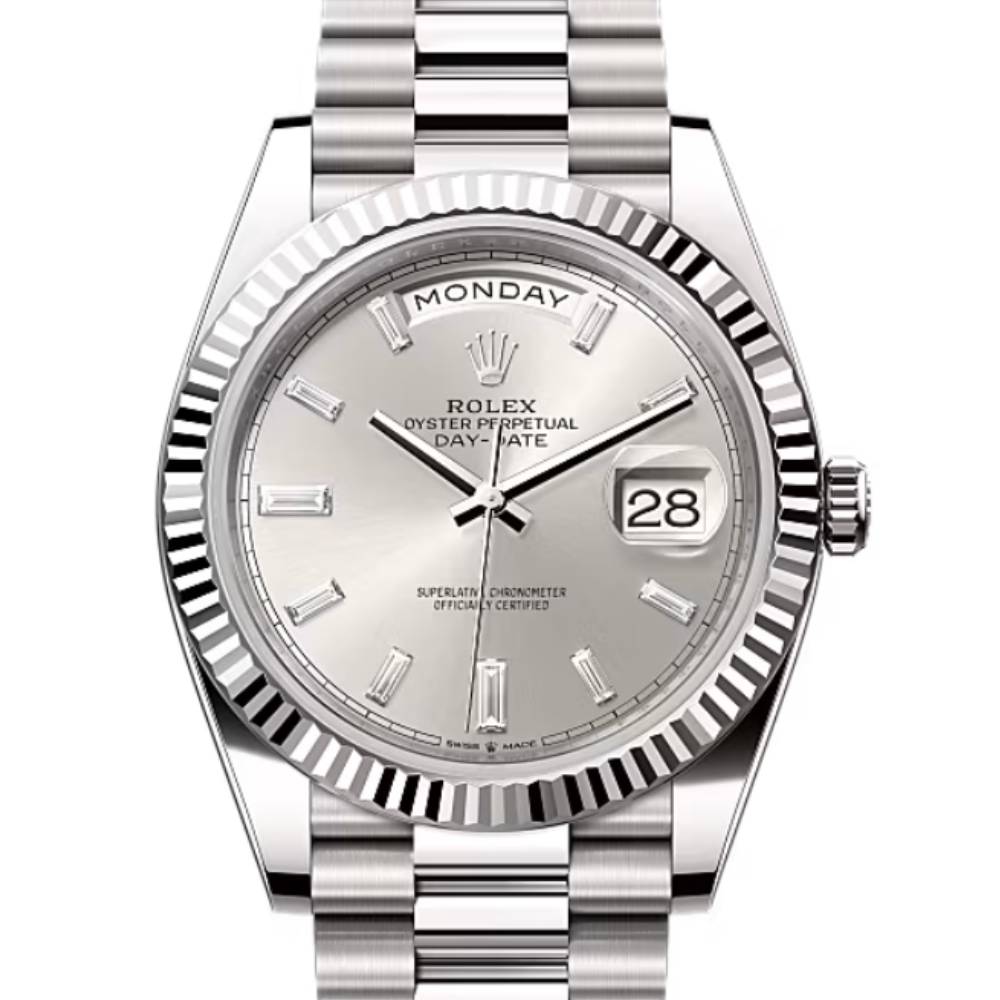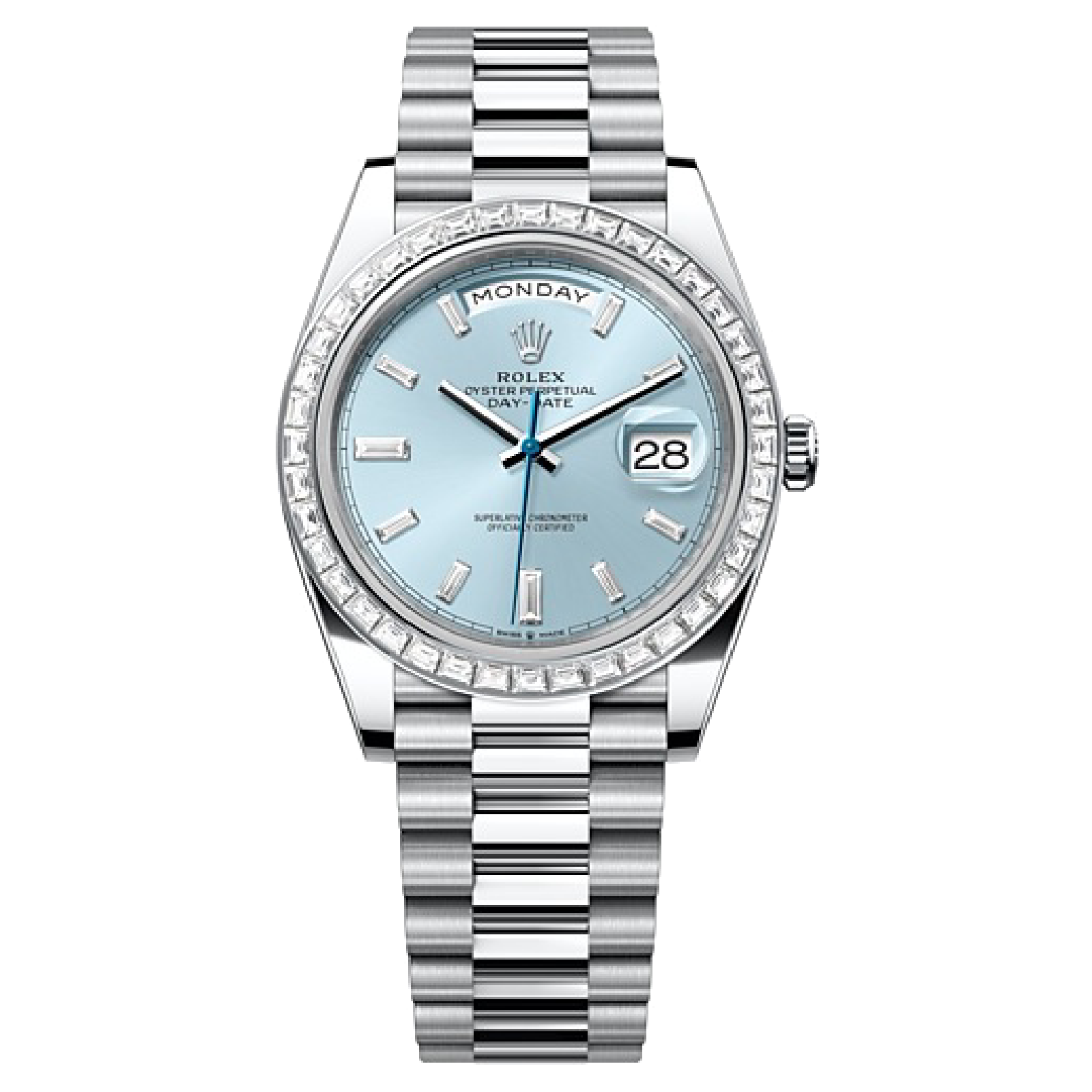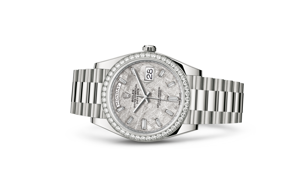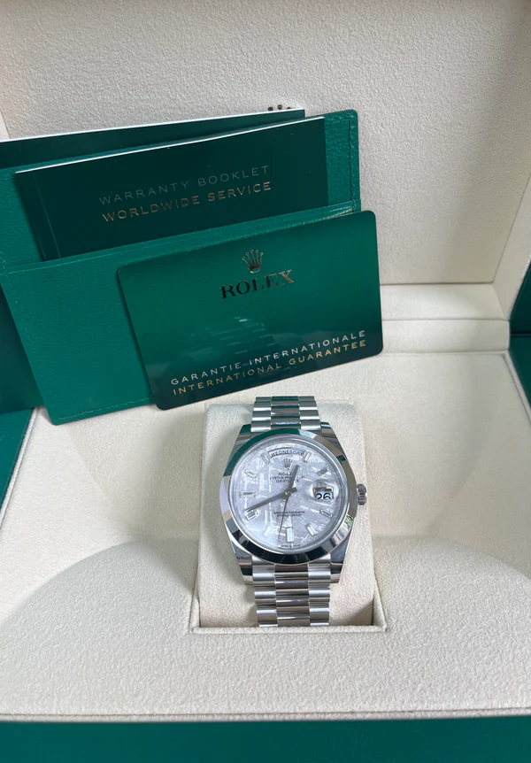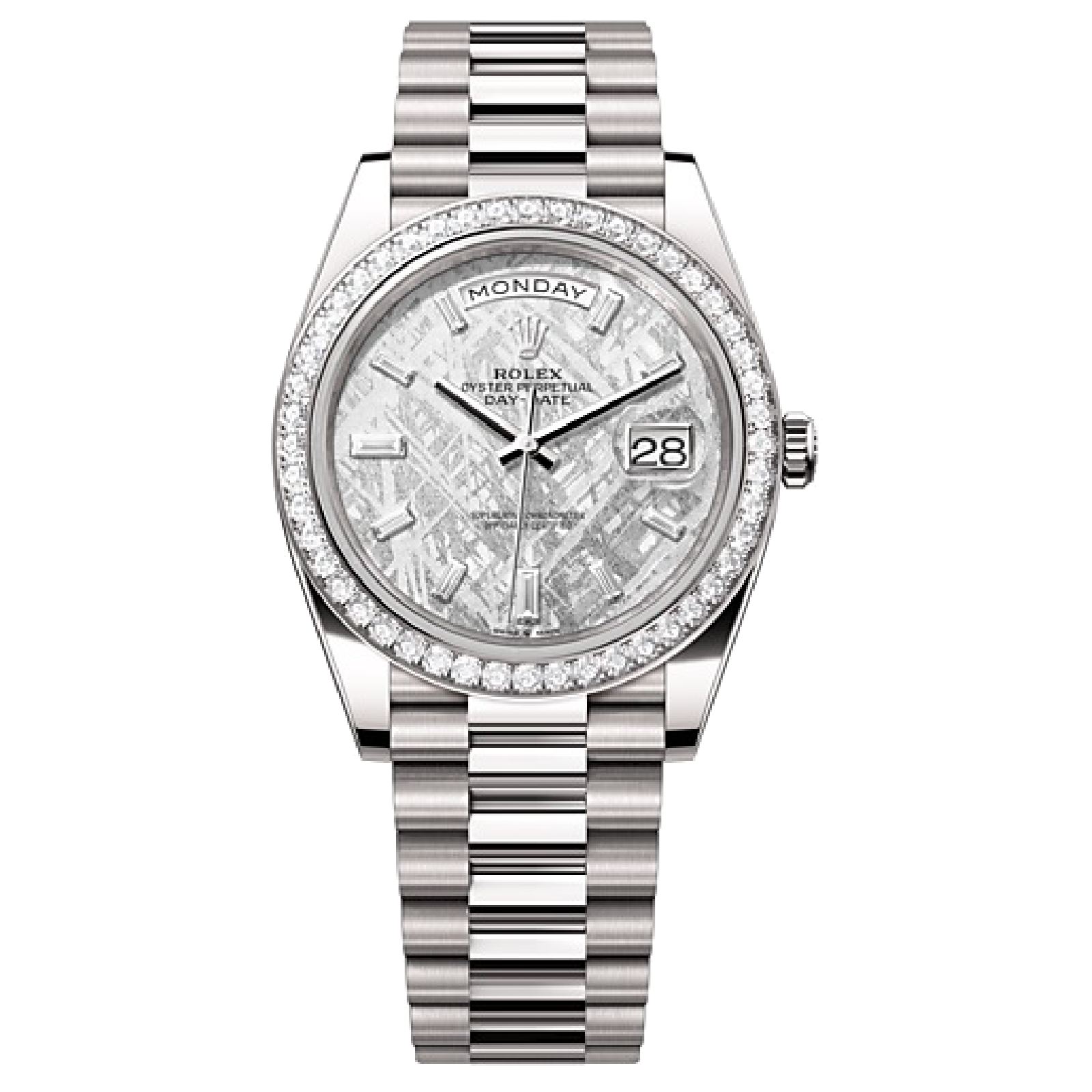 Day-Date 40 Platinum Day-Date Smooth Bezel Meteorite Baguette Diamond Dial President Bracelet 228206