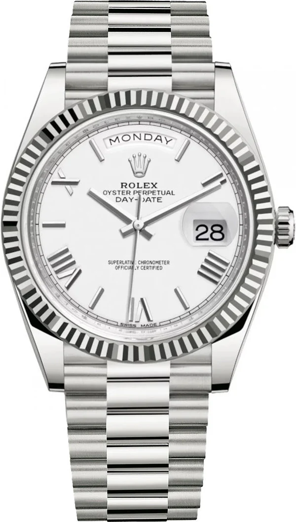 Day Date 40mm - Ref 228239-0046 - White Roman Dial & Fluted Bezel, 18K White Gold President Bracelet Men's Watch