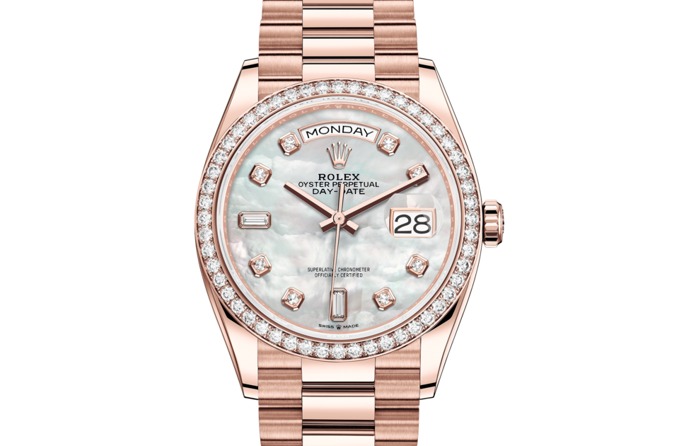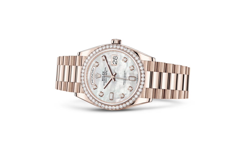 Day Date 36mm - Ref 128345rbr-0028 - White Mother of Pearl Diamond Dial & Diamond Bezel, 18K Rose Gold President Bracelet Watch