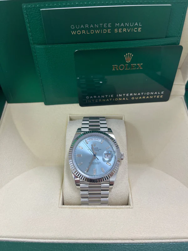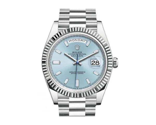 Day Date 40mm - Ref 228236 - Ice Blue Stick Dial & Fluted Bezel, Platinum President Bracelet Men's Watch