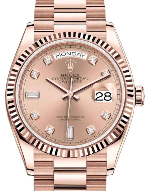 Day Date 36mm - Ref 128235-0009 - Rose Diamond Dial & Fluted Bezel, 18K Rose Gold President Bracelet Watch