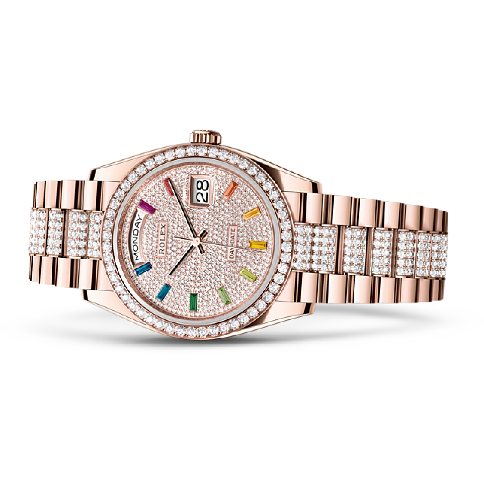 Day Date 36mm - Ref 128345rbr-0043 - Pave Rainbow Diamond Dial & Diamond Bezel, 18K Rose Gold & Diamonds President Bracelet Watch