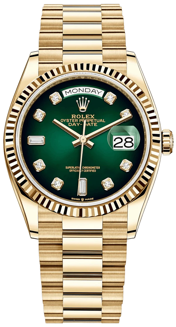 Day Date 36mm - Ref 128238-0069 - Green Ombre Diamond Dial, 18K Yellow Gold President Bracelet Watch