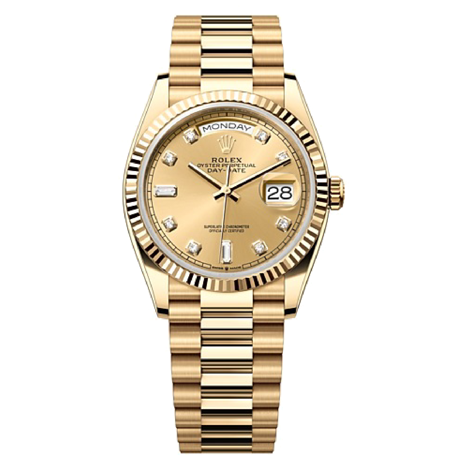 Day Date 36/40mm - Ref 128238-0005 - Champagne Diamond Dial & Fluted Bezel, 18K Yellow Gold President Bracelet Watch