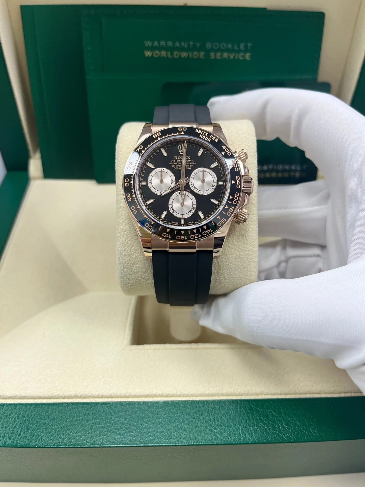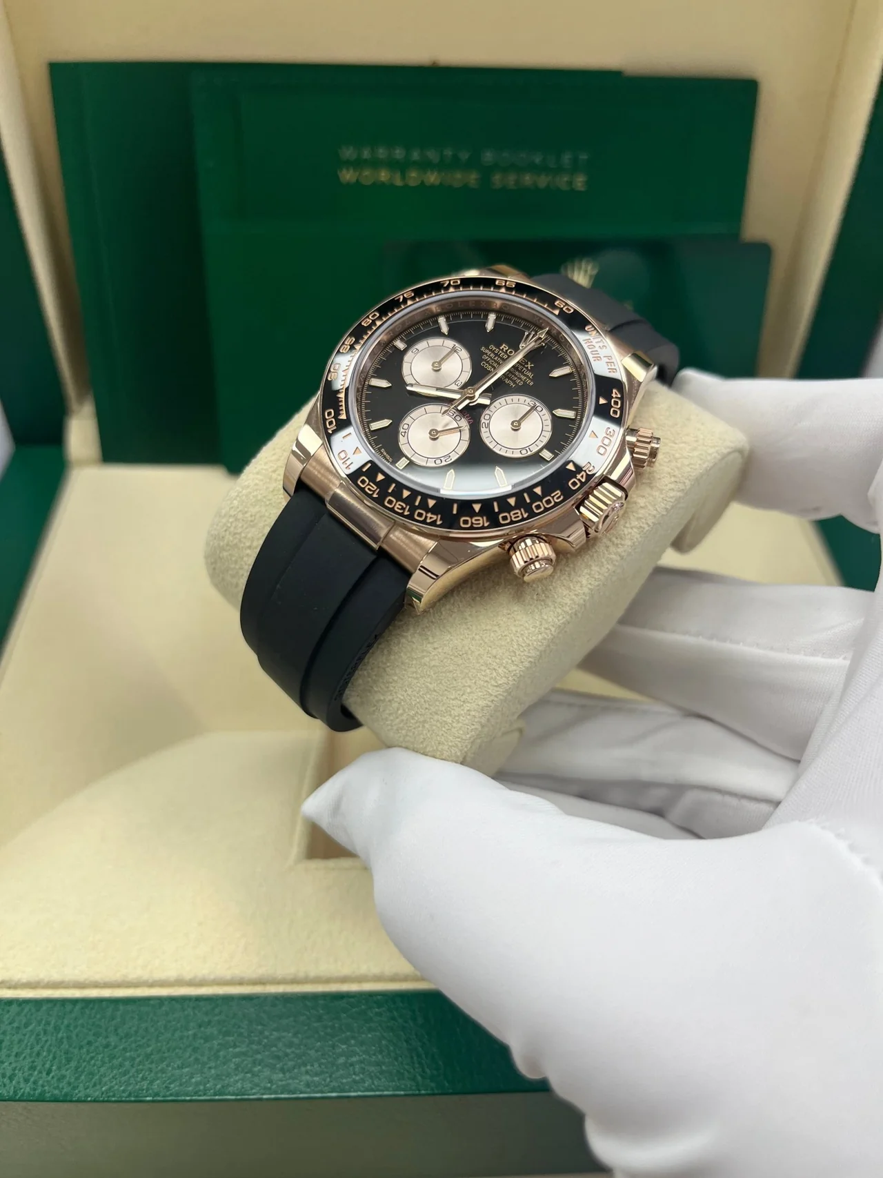 • Cosmograph Daytona 40mm - Ref 126515LN - Bright Black & Sundust Index Dial & Ceramic Bezel, 18K Rose Gold Case Black Oysterflex Bracelet Men's Watch