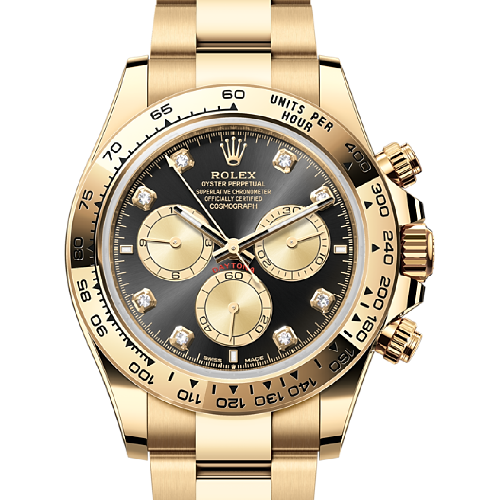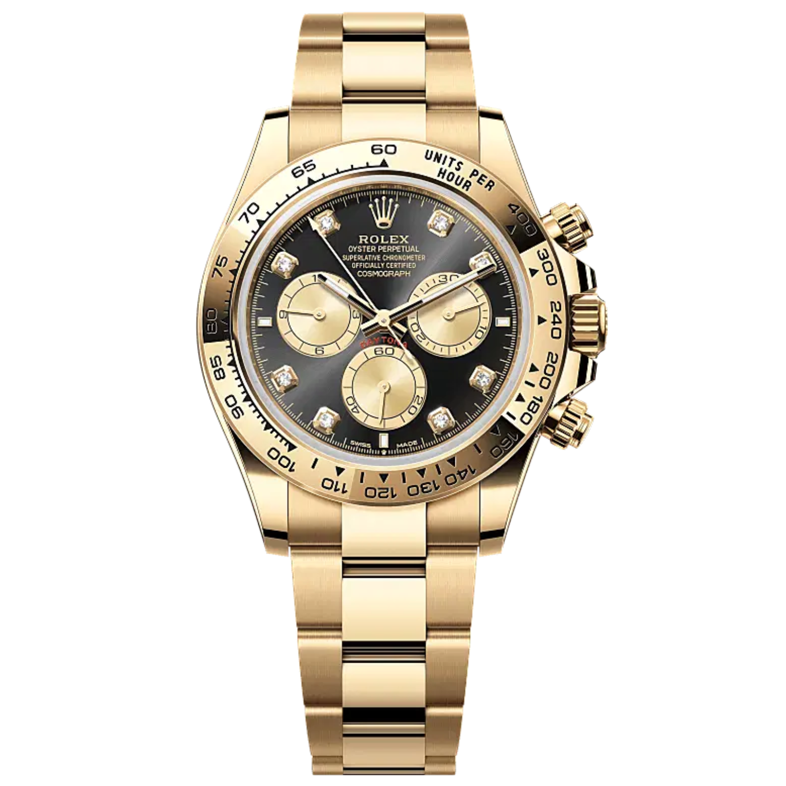 Cosmograph Daytona 40mm - Ref 126508 - Bright Black & Champagne Diamond Dial, 18K Yellow Gold Oyster Bracelet Men's Watch