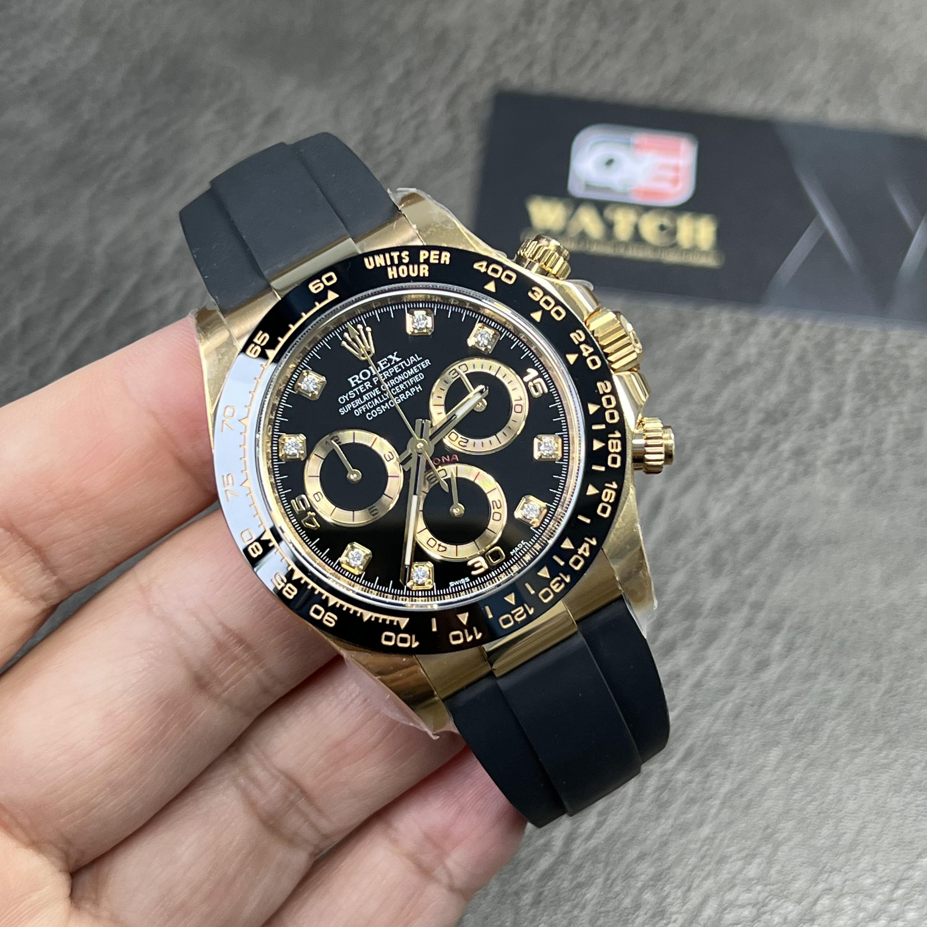 Cosmograph Daytona 40mm - Ref 116518ln - Black Diamond Dial & Ceramic Bezel, 18K Yellow Gold Case Black Oysterflex Bracelet Men's Watch