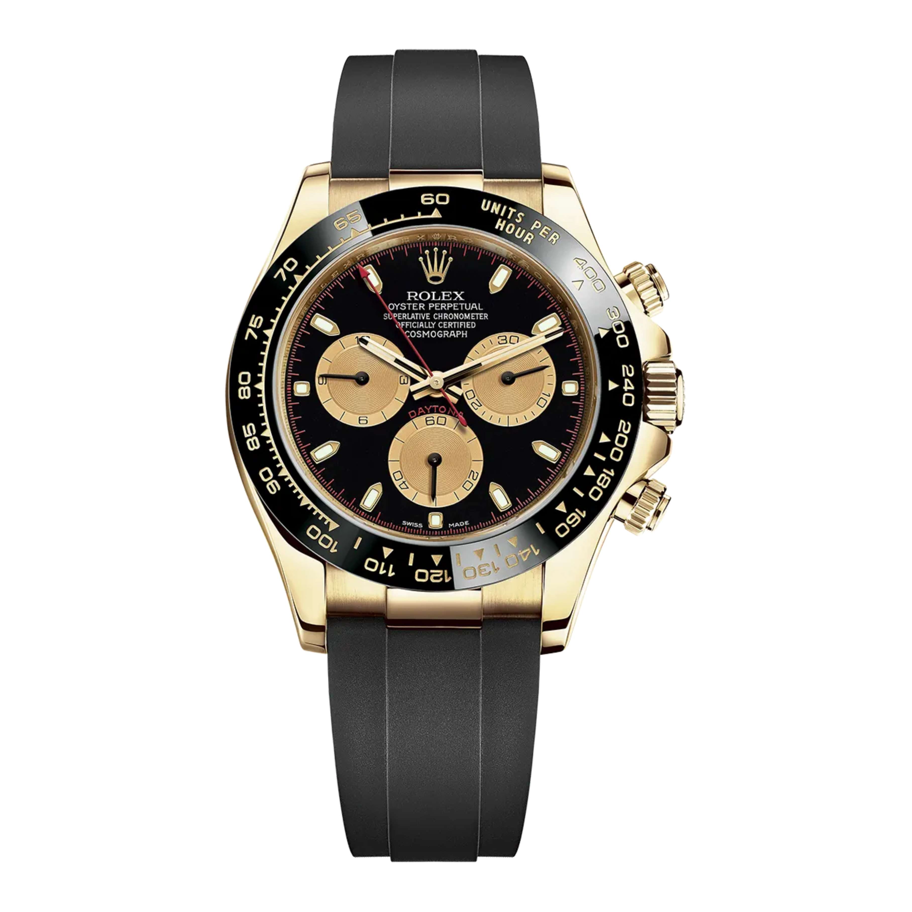 Cosmograph Daytona 40mm - Ref 116518ln-0047 - Black & Champagne Index Dial & Ceramic Bezel, 18K Yellow Gold Case Black Oysterflex Bracelet Men's Watch