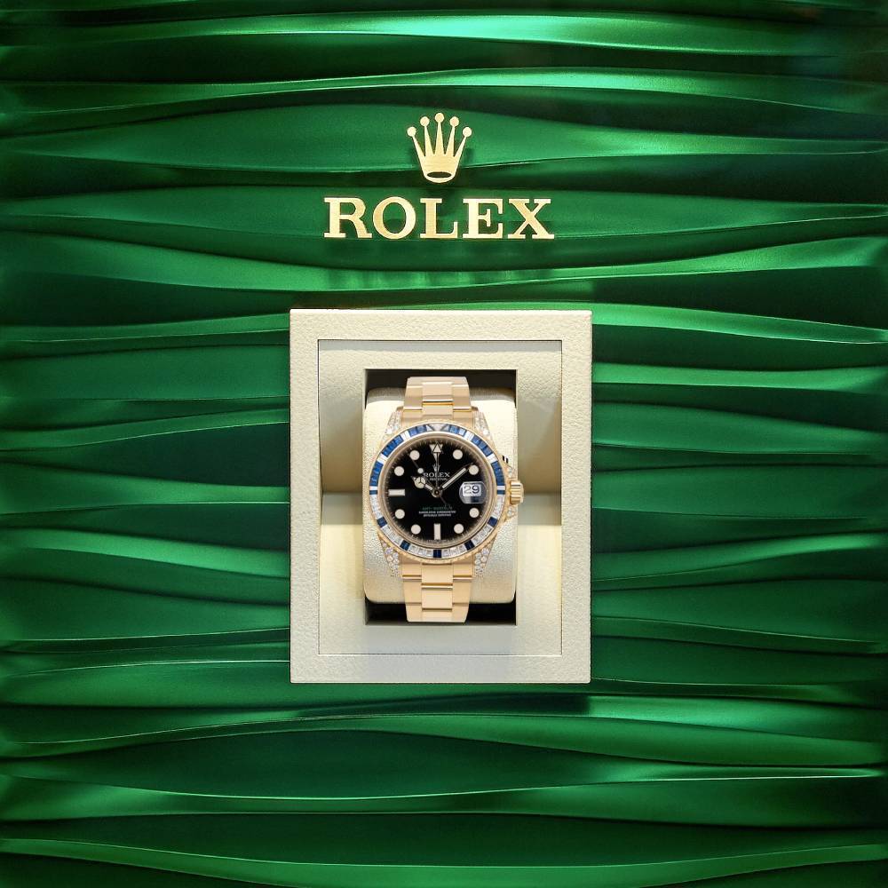 GMT-Master II 40mm - Ref 116758SA - Pave Diamond Dial, Diamond & Sapphire Bezel, Diamond Case, 18K Yellow Gold Oyster Bracelet Men's Watch