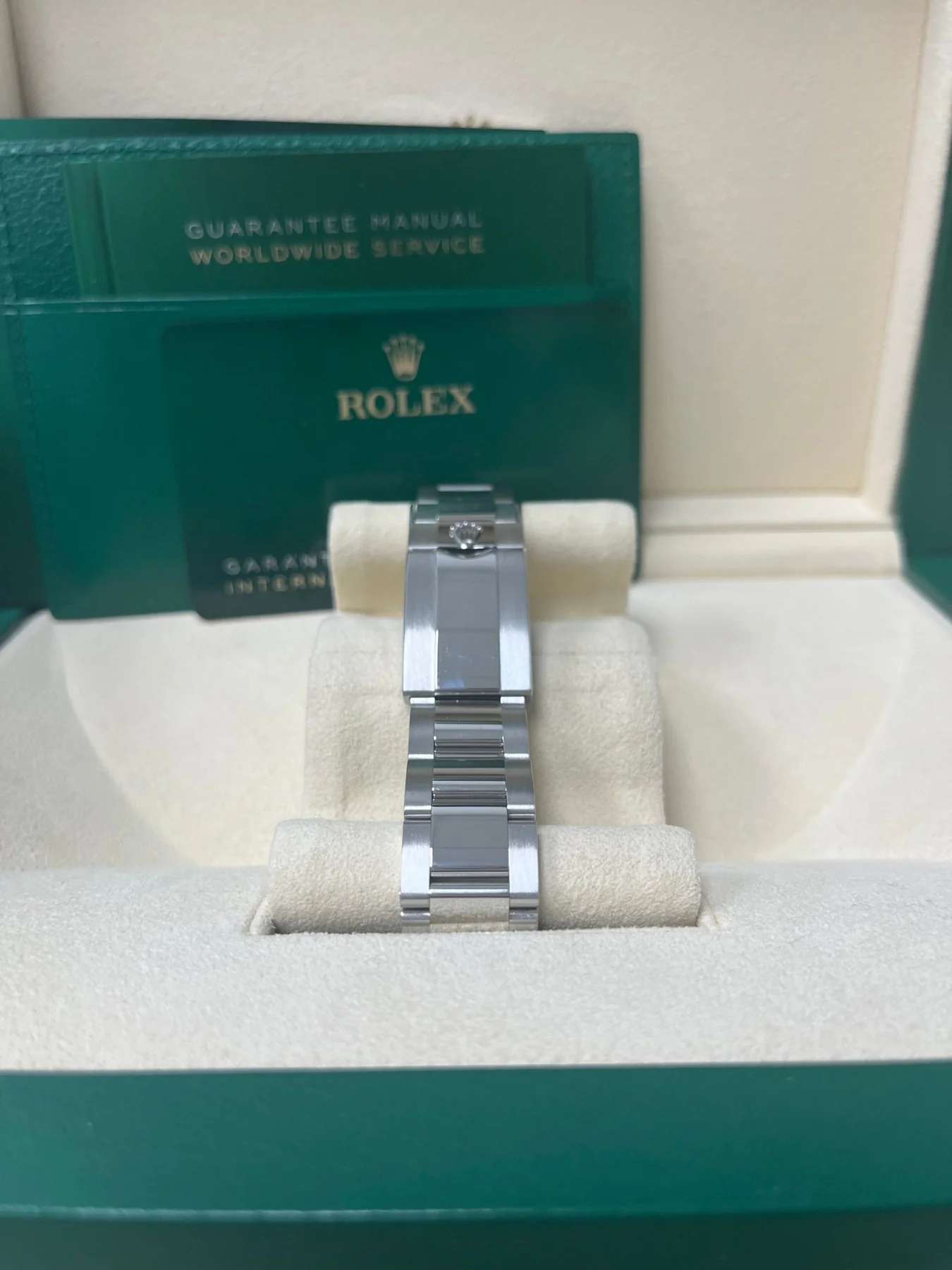 | Material | Crafted from 316L stainless steel with a Rolex-style polished finish, paired with a hardened mineral blued crystal for clear, long-lasting protection. |