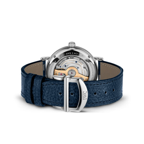 This IWC Portofino Automatic 37mm is a sophisticated design, featuring a diamond bezel, all of which is attached to a Blue calfskin leather strap. Complemented with diamond marks, this Portofino is powered by the 32111 Calibre movement.