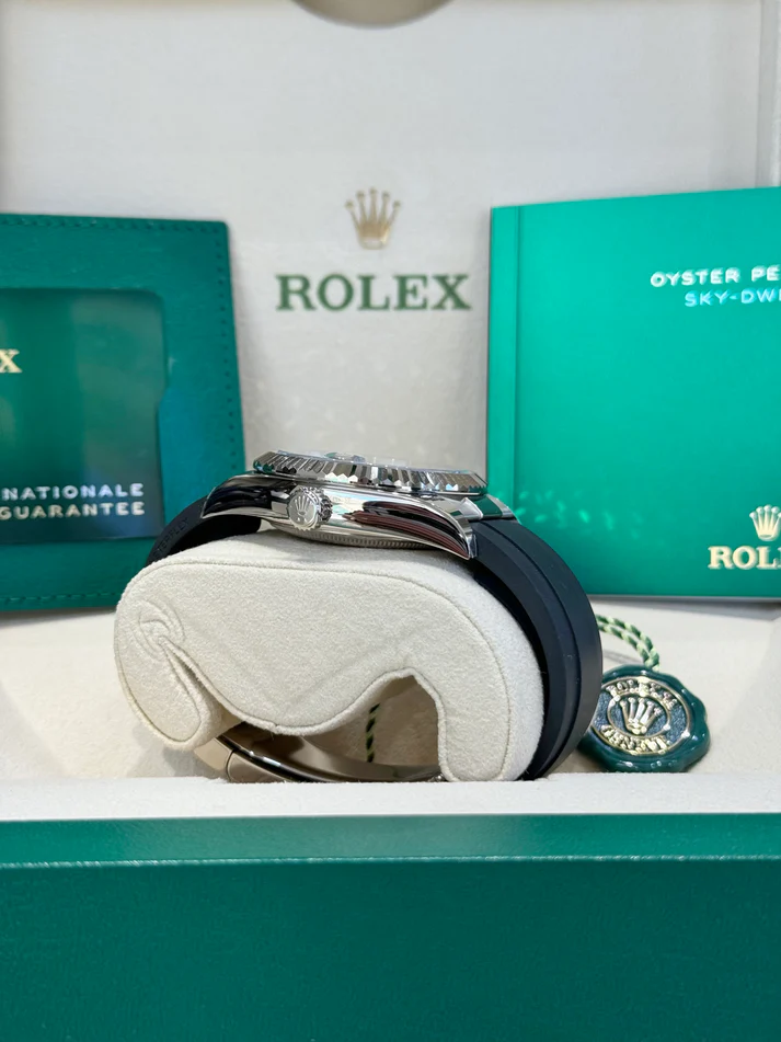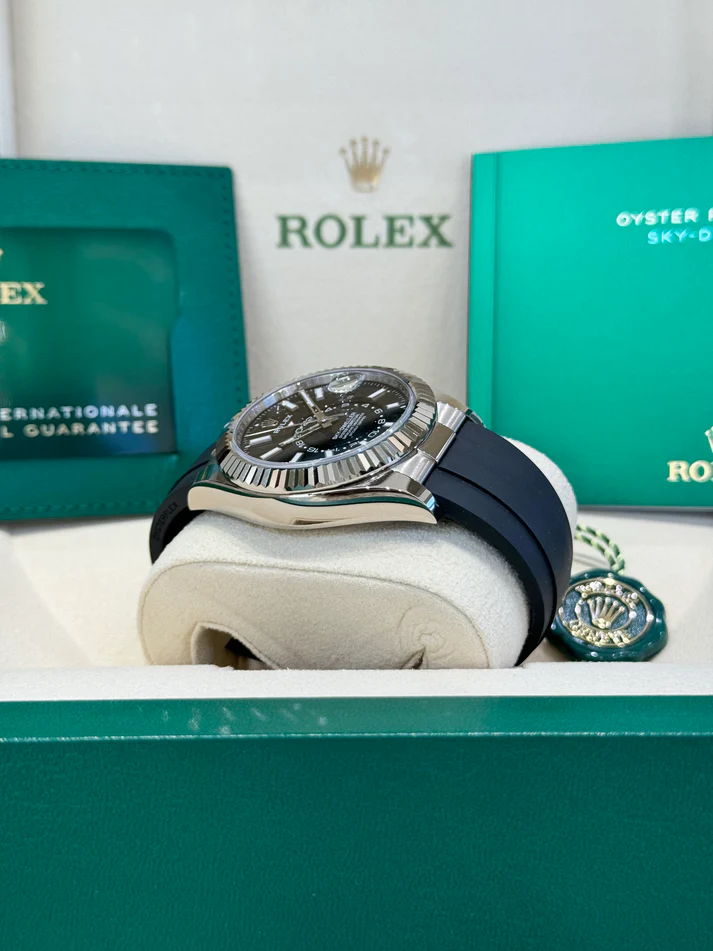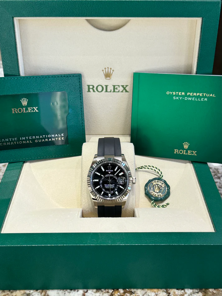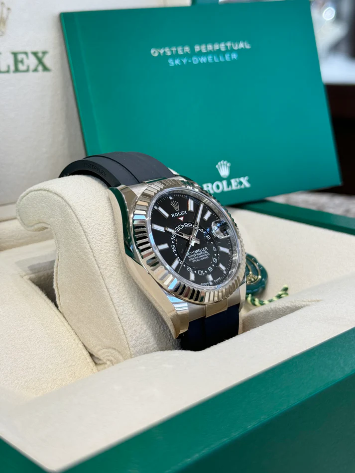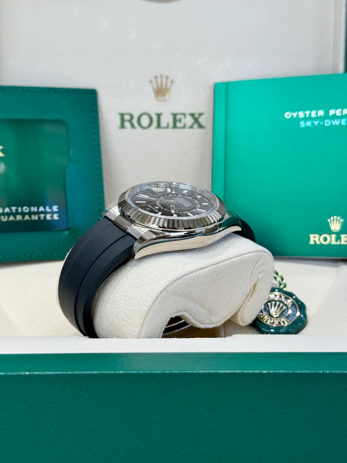 Sky-Dweller 42mm - Ref 336239 - Bright Black Stick Dial & 18K White Gold Case, Black Oysterflex Bracelet Watch