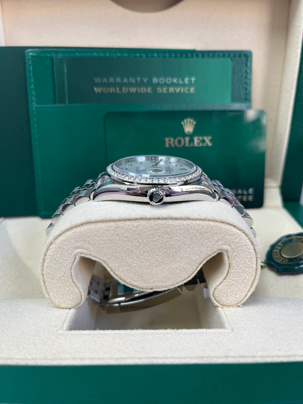 This dial features diamonds in 18 ct gold settings. Mother-of-pearl is by its nature full of mystery and surprises. Depending on its origin, it can be pink, white, black or yellow. It differs in colour, intensity and structure according to the part of the shell from which it is extracted. At Rolex, mother-of-pearl is never artificially coloured. Instead, particular know-how and skill are devoted to simply highlighting its natural beauty and preserving the original hues. As all mother-of-pearl dials are unique pieces, an identical dial will never be found on another wrist.