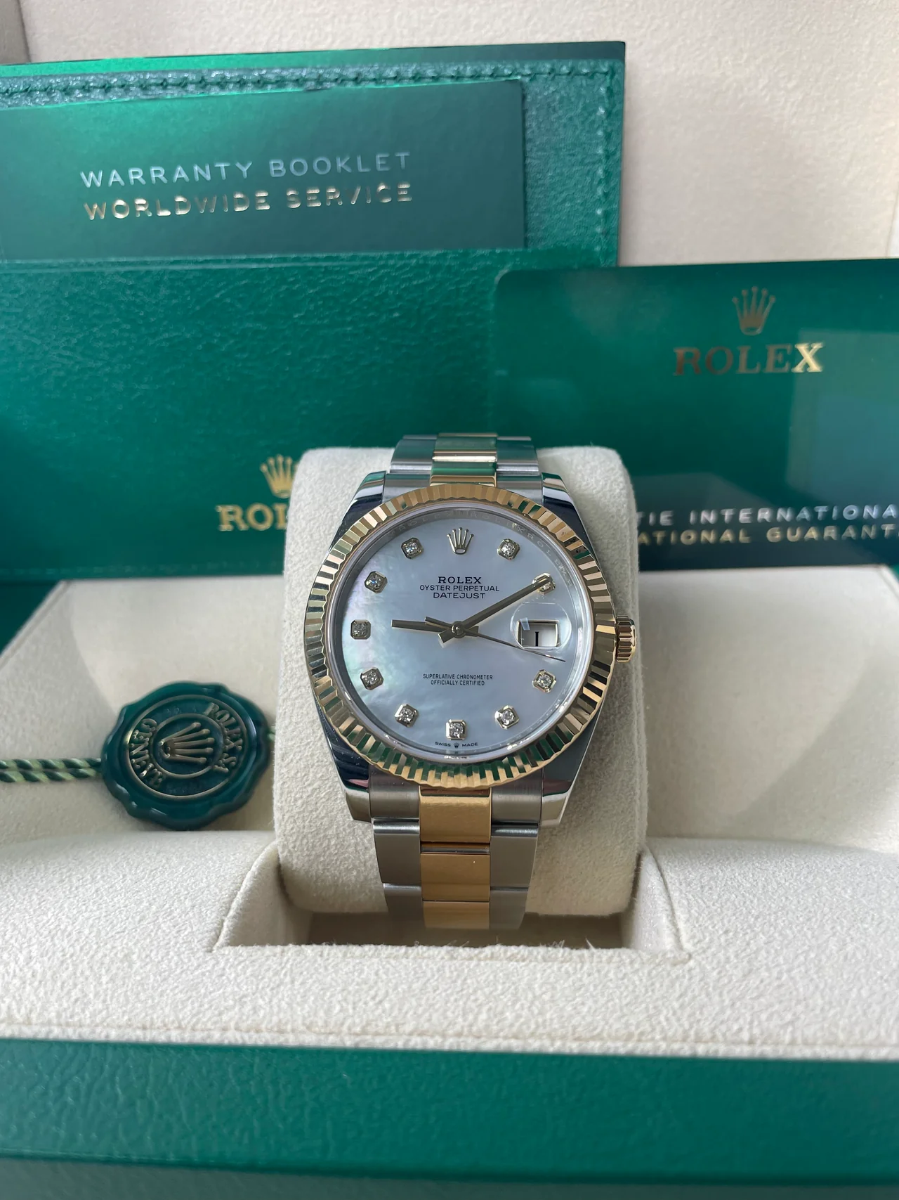 Datejust 41mm - Ref 126333-0017 - White Mother of Pearl Diamond Dial, Two Tone Stainless Steel & 18K Yellow Gold Oyster Bracelet Men's Watch
