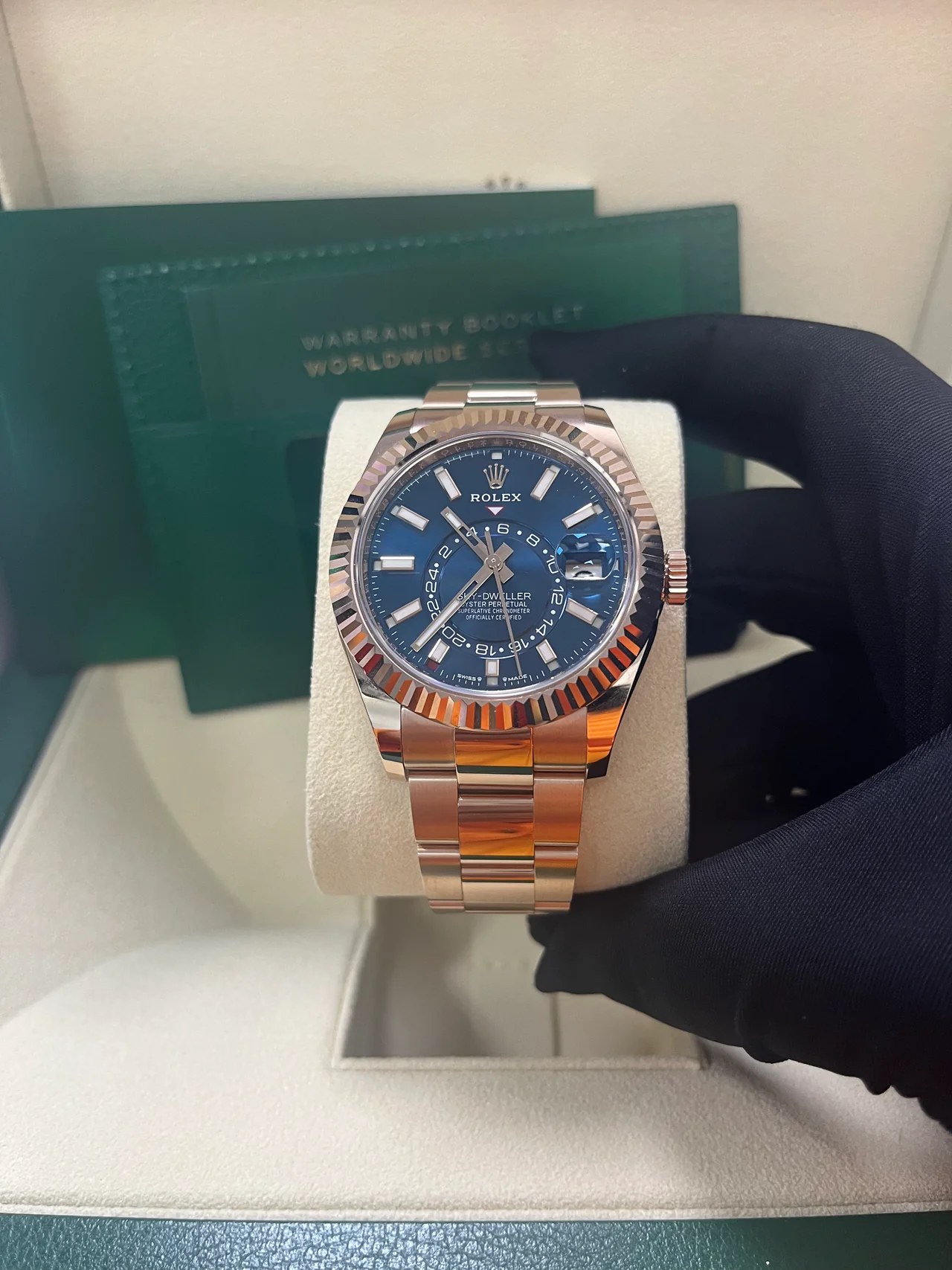 Model: Rolex Sky-Dweller 336935, Blue-Green Dial, 18k Everose Gold Oyster Bracelet
