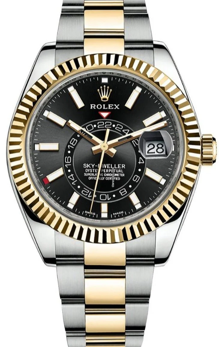 Sky-Dweller 42mm - Ref 336933 - Bright Black Stick Dial, Two Tone Stainless Steel & 18K Yellow Gold Oyster Bracelet Watch