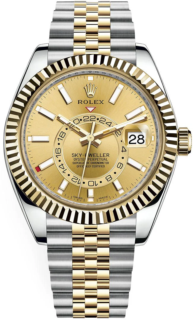 Sky-Dweller 42mm - Ref 336933 - Champagne Stick Dial, Two Tone Stainless Steel & 18K Yellow Gold Jubilee Bracelet Watch