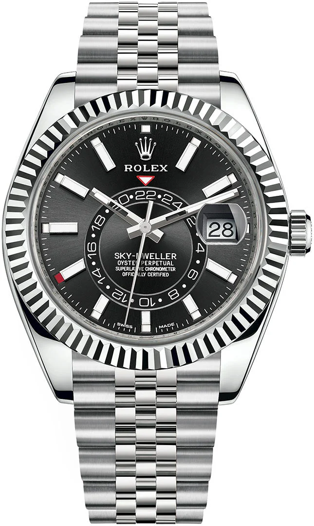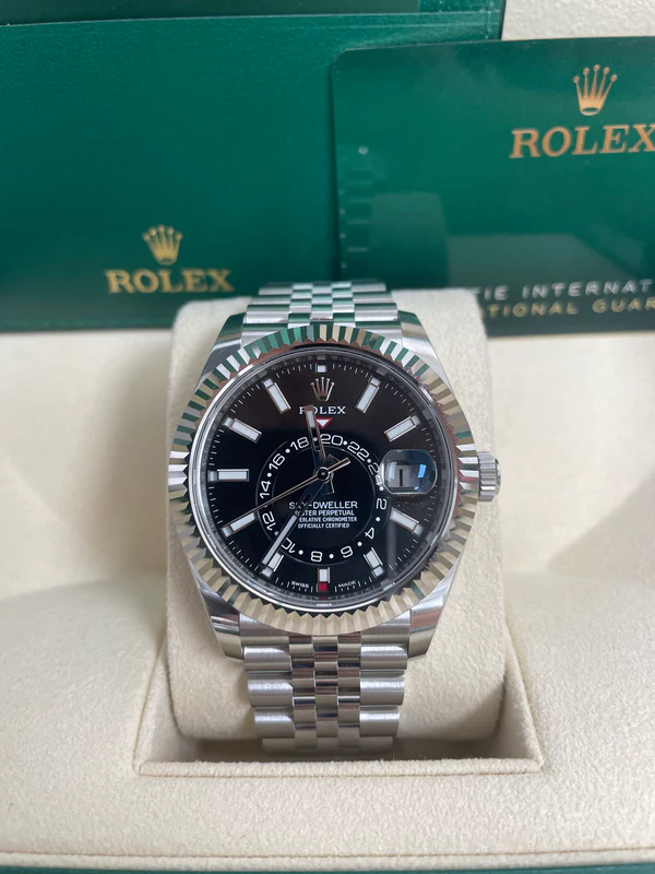 Sky-Dweller 42mm - Ref 336934 - Bright Black Stick Dial, Two Tone Stainless Steel & 18K White Gold Jubilee Bracelet Watch