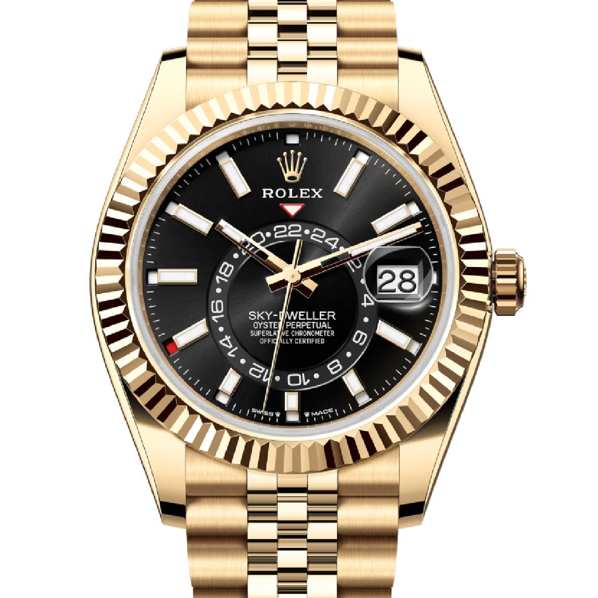Sky-Dweller 42mm - Ref 336938-0005 - Bright Black Stick Dial, 18K Yellow Gold Jubilee Bracelet Watch