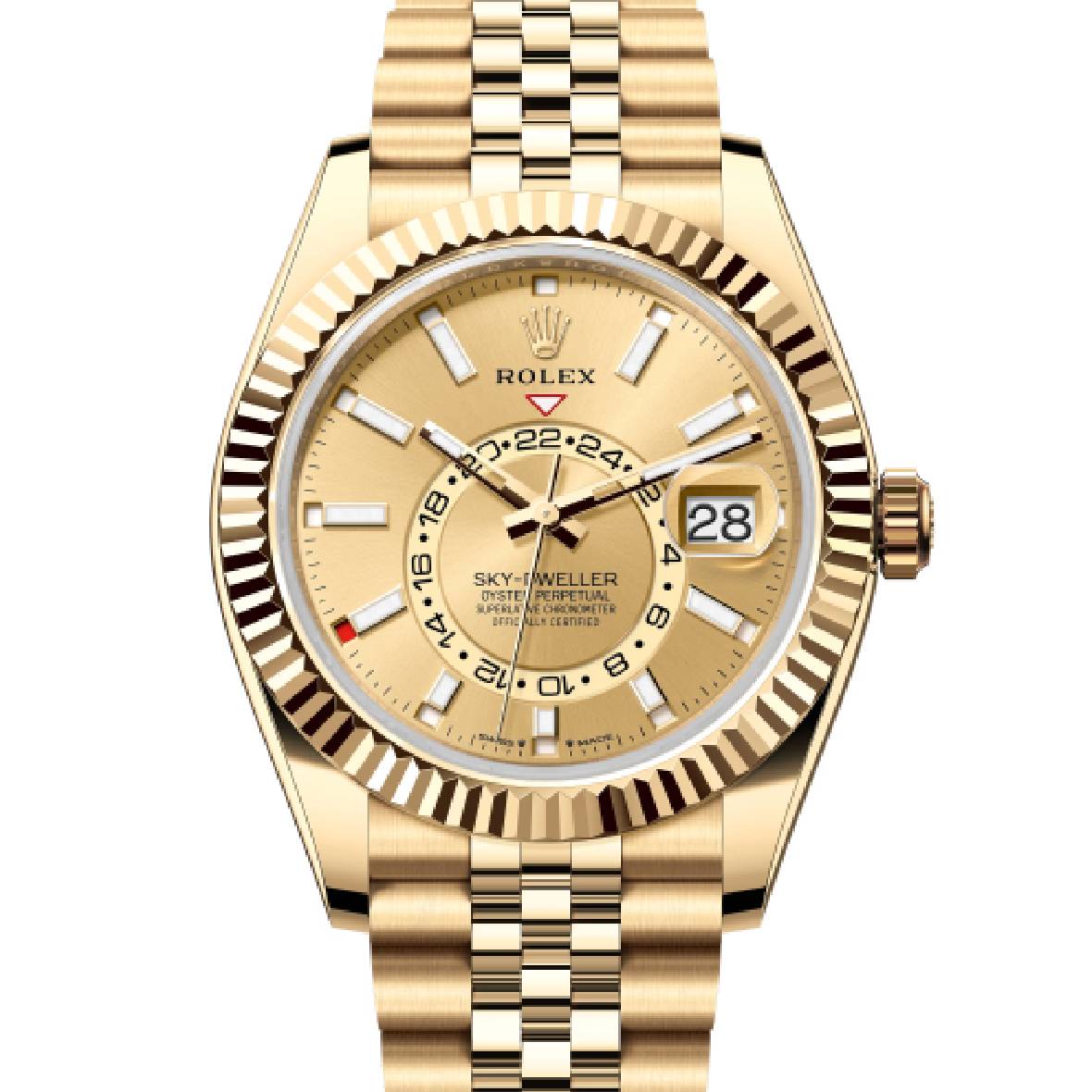 Sky-Dweller 42mm - Ref 336938-0004 - Champagne Stick Dial, 18K Yellow Gold Jubilee Bracelet Watch